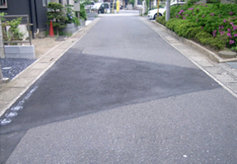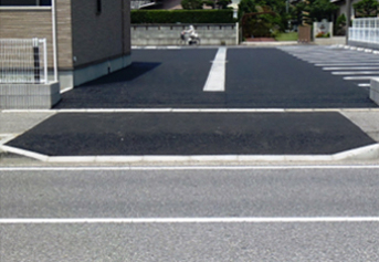 駐車場などから車道へ出やすくするために歩道を切下げ、アスファルト舗装を実施しています。