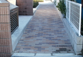 道路からマンションまでのアプローチについて、景観に配慮したブロック舗装を実施しています。