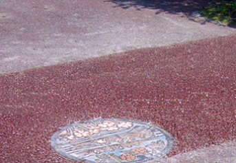 給水管工事後にカラー舗装を実施しています。