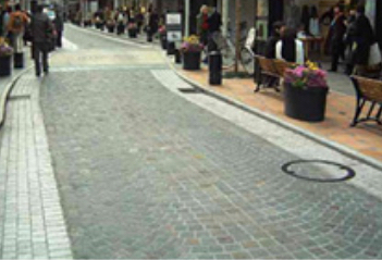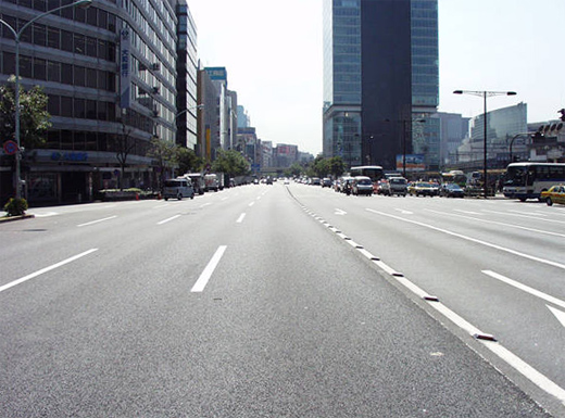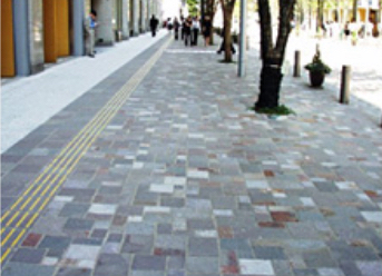 市街地の活性化事業や大都市部のリニューアル事業のニーズに対応する景観舗装として、自然石舗装「インジェクト工法」を「丸の内2丁目街路整備工事」に採用。それまでのビジネス街の雰囲気を変えた。