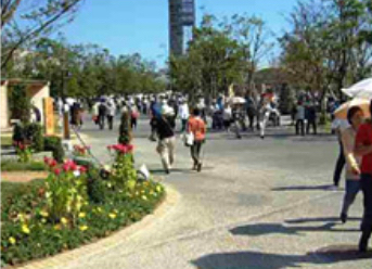 浜名湖で華々しく開催された浜名湖花博で保水性舗装「クールロード」を施工。夏場の路面温度上昇を抑制する効果があり、環境にやさしいヒートアイランド対策として大いに注目を集めた。