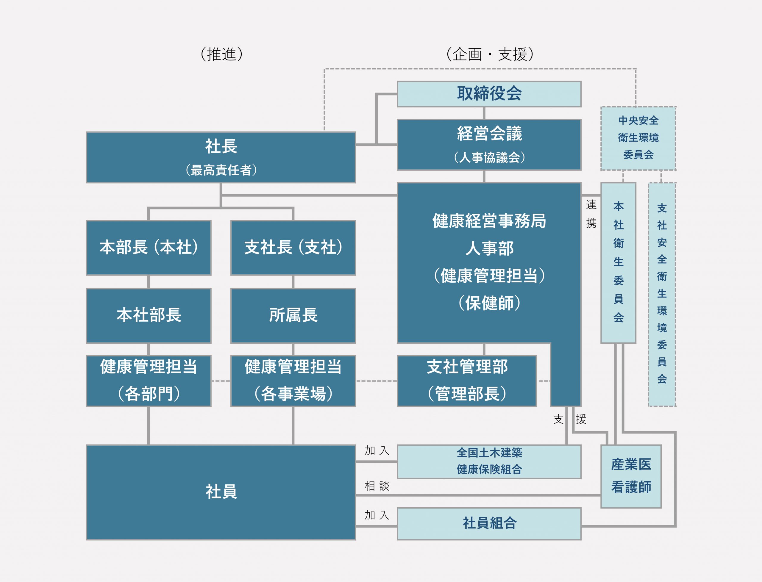 - 社員一人ひとりが自らの健康に留意し、保持増進に努めることを支援します。
